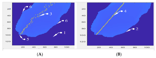 As the camera was mounted on top of the animal and the points of the cow’s back were presented to the data analysis, the points of greatest interest were those near the contour and describing its perimeter. Using the spine of a cow as an example, we can consider the basic expressions to identify it. The algorithm developed is based on the ordinary method of least squares (LS).