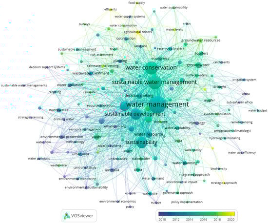 In the initial phase of our research, we conducted a bibliometric analysis to gather relevant sources on sustainable water management for a comprehensive review. The VOSviewer software was used to visualize the outcomes of this bibliometric analysis.
