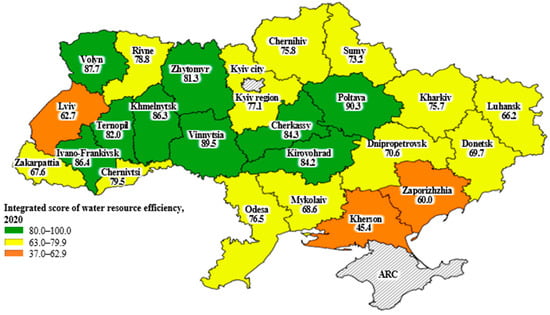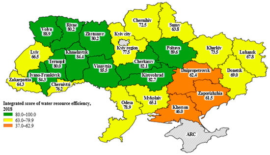 54] at different hierarchical levels and in different industries and countries. Our findings can be used in Ukraine to diagnose and plan sustainable water management measures in order to improve the resilience (both of particular production systems and entire regions), while the comprehensive assessment methodology of water resource efficiency can be applied in other regions and countries as well. Quantification of the impact of efficient water resource management on the resilient regional development is still in progress, yet presented results already show the differences in the water resource efficiency and point out the benefits of sustainable approaches.