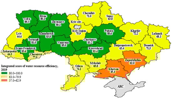 Regions with a sufficient level of water resource efficiency, which are Zhytomyr, Chernivtsi, Chernihiv, Kharkiv, Luhansk, Odesa, Kyiv, Donetsk, Lviv, Mykolaiv, Sumy, and Zakarpattia;
