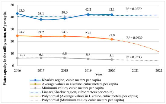 The capacity of water use in the utility sector in the Kharkiv region did not show any significant changes during the study period (