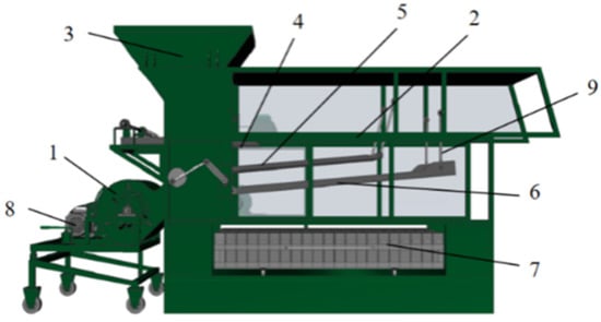 - Leng, J.; Li, X.; Du, Y.; He, S.; Ding, X.; Niu, X. Analysis and Optimization of Internal Flow Field in the cleaning unit of a Single longitudinal axial flow grain combine. Chin. J. Agric. Eng. 2020, 36, 39–48. [Google Scholar]