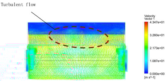 In order to explore the influence of fan speed on the airflow field of the cleaning chamber, the airflow field of the cleaning chamber was simulated when the fan speed was 800, 900, 1000, and 1100 r/min, and the results were shown in Figure 6, Figure 7 and Figure 8.