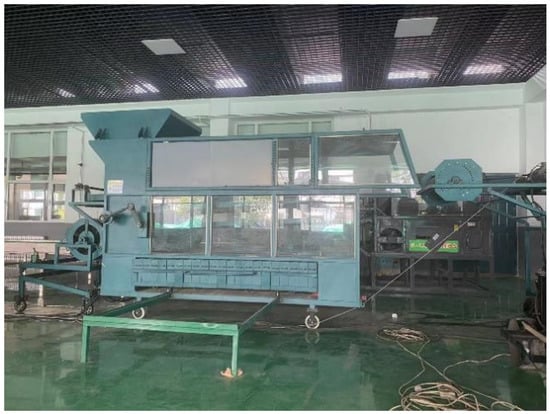 In order to verify the accuracy of the optimization experiment, three repeated tests were carried out under the conditions of optimal parameter combination to obtain the average value. The test was conducted using the air-screen type combined cleaning test rig independently developed by the research group, as shown in Figure 11.