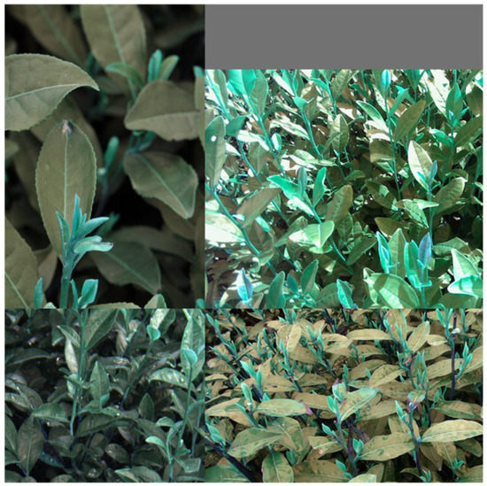 As mentioned above, a large tea bud image dataset was established over a period of three years, from 2020 to 2022. It includes tens of thousands of samples acquired with different cameras, during different seasons and weather conditions and from different tea plant varieties. A selection of these samples can be seen in Figure 10.