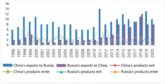 - Sun, H.; Tong, G. The Impact of Russian Green Trade Barriers on Sino Russian Agricultural Product Trade. Jiangxi Soc. Sci. 2019, 39, 77–85. [Google Scholar]