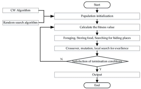 - Initialize the population. To increase the diversity of solutions, the initial population is generated in two ways: CW algorithm and random search.