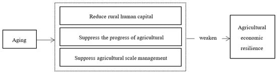 The phenomenon of population aging is an inevitable experience of a country in the process of development and has become a global social phenomenon [1,2]. It has been predicted that by 2050, the world’s elderly population will reach 2.1 billion, accounting for 17% of the world’s population. Aging populations pose a major challenge to the resilience of economies around the world. Population aging puts pressure on the national pension system and retirement policies, and the implementation of these policies can cause national financial difficulties and macroeconomic problems [3]. Moreover, population aging leads to a decrease in the size of the working-age population and a decline in the labor participation rate, which directly affects the future labor shortage and aging, thus affecting the economic and social development of the country [4,5]. As a labor-intensive industry, agriculture is one of the sectors most affected by population aging [6,7]. Faced with increasingly complex external risks and the inherent vulnerability of agriculture, the impact of uncertainty on the development of China’s agricultural economy has significantly intensified [8,9], and China’s agricultural economic resilience has been greatly challenged. However, so far, how aging affects the resilience of the agricultural economy has not been fully studied and deeply discussed. The agricultural industry has made great contributions to ensuring food security and increasing farmers’ incomes and is an important part of economic growth. Exploring the above issues is of great significance for addressing the aging of the rural labor force, enhancing the resilience of the agricultural economy, and ensuring sustainable agricultural development in China.