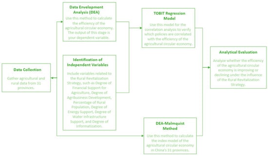 Currently, the DEA method is widely adopted in economic research, particularly in studies on the circular economy. Ul Haq et al. utilized the DEA method to evaluate the green economy efficiency of tea gardens in the Rize province of Turkey, establishing an efficiency model and identifying areas for improvement [4]. Zhao et al. applied the DEA method to analyze panel data from 286 prefecture-level cities in China, conducting a comprehensive study on China’s green economy and its driving factors [30]. Streimikis and others also specifically examined the use of the DEA method in the green economy and agricultural pollution scenarios, finding that the DEA method has a broad-ranging impact [31].