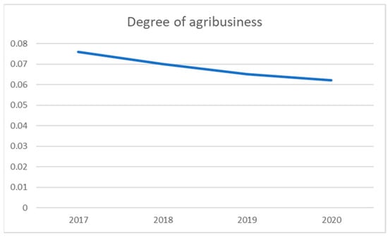 Degree of agribusiness: This represents the scale and industrial transformation of agricultural production, calculated as the ratio of the number of agricultural legal entities to the total number of legal entities in each province and city (Supplementary Table S2). The data on the number of agricultural legal entities for each province in 2018 are missing and are supplemented using linear interpolation.