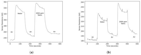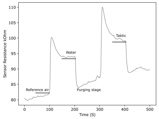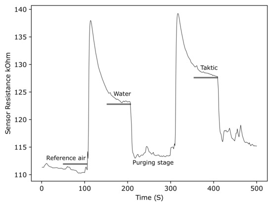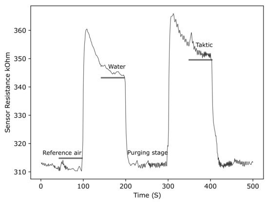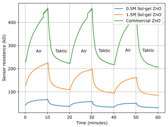 3.2.2. Response of ZnO Gas Sensors to Pure Taktic Fumes