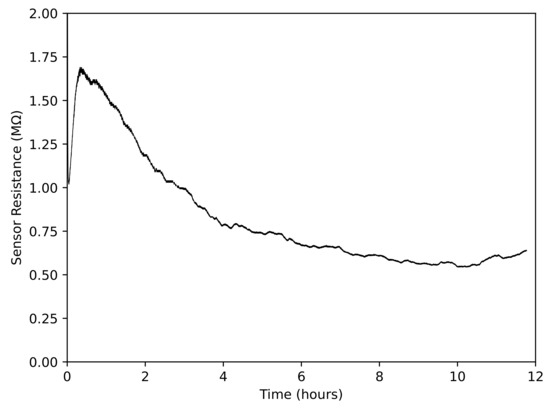 3.2.3. Gas Sensor Response over Long Periods of Time