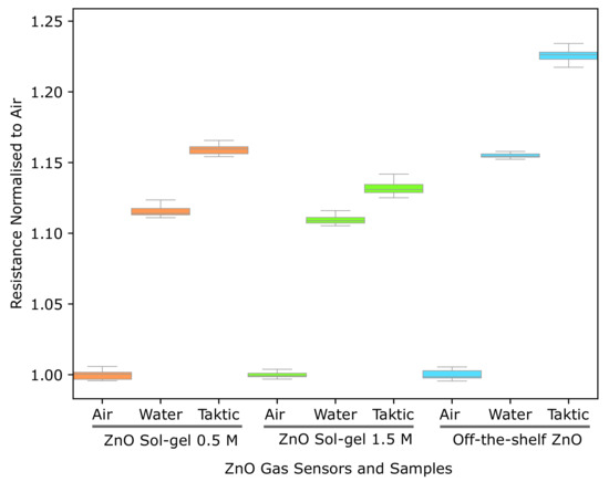 3.1. Results for E-Nose with Commercial Gas Sensors
