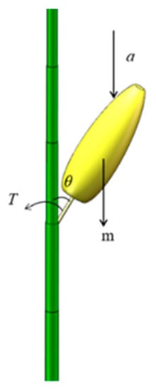 In the formula, m is the mass of an ear, kg; L1 is the distance from the center of gravity of the ear to the growth point, mm; L2 is the distance from the point of force application to the growth point, mm; θ is the angle between the ear and the stem, °.