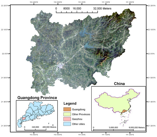 Landsat 8 remote sensing image of Gaozhou, Guangdong, China.