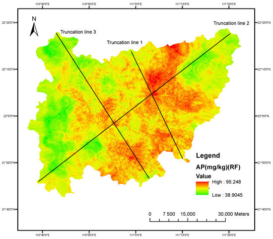 Moreover, based on the mapping results of the RF model, three truncation lines passing through typical areas where significant changes of key environmental variables and AP occur within the study area were selected to analyze the correlation between AP and environmental variables. The results revealed that, in addition to the spatial heterogeneity of environmental variables and AP, there is spatial heterogeneity in the influence strength of environmental variables on AP. This implies the presence of spatial non-stationarity and anisotropy in the influence strength of environmental variables, providing directions for further research on high-precision spatial interpolation and digital soil mapping methods considering the spatial heterogeneity of the influence strength of environmental variables.