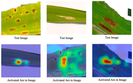 According to Figure 8, the activated areas which are actually the affected portions of the leaves are visualized when the background is removed using thresholding criteria in image processing. The pattern, edge and color are extracted as features that are responsible for predicting the class.