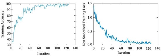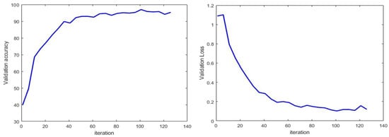 According to Figure 9, training accuracy reaches 1 at or near the 80th iteration while validation accuracy converges after the 130th iteration, alternatively said, after the 5th epoch. The validation accuracy of the progress changes with iteration and reaches around 97.9% after 130 iterations as shown in Figure 10.