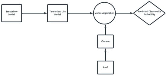 Mobile apps were developed including the steps of image acquisition, image resizing, image augmentation, removal of background, K-means clustering and CNN model to classify the rice leaf diseases in the agricultural field. To plug the model into the mobile, the model was implemented using the TensorFlow Keras library as shown in Figure 13. The TensorFlow model was converted into a compressed flat buffer with the TensorFlow Lite Converter. The TensorFlow Lite model was placed in the application for classification of the diseases.
