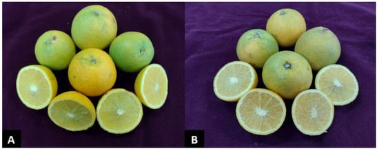 Citrus orchards in São Paulo State are responsible for the largest volume of fruit produced in Brazil and are mainly focused on producing sweet oranges for freezing and concentrated juice for export []. Despite its leadership in this activity, Brazil is still not well known for its table citrus production. However, there has been growing interest in the production sector in the diversification of scion cultivars intended for whole-fruit consumption [].