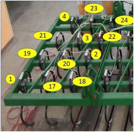 (C5) Since we failed to validate the intuitive assumption that the working organs in the first line behind the tractor would be the most intensively requested, neither in these investigations nor in those described in [41], we deduce that, at least in the experimental conditions, the distribution of the maximum load is random over the twelve working bodies. An important consequence of this finding is that we cannot schedule a rotation of the working bodies on the load-bearing structure positions to equalise the wear and use the full working capacity of all working bodies. Moreover, a statistically higher load was observed for the working body in the last line of organs in the load-bearing structure. First, only the result of the statistical analysis was validated based on the analysis of the images taken during the experiments. It is shown that certain aspects must be fixed in the operation of this machine, which will improve the quality of the work.
