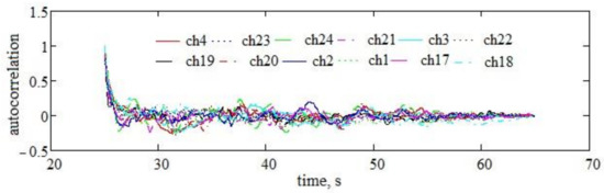 The autocorrelations of the twelve signals recorded in the experiment were calculated using [50].