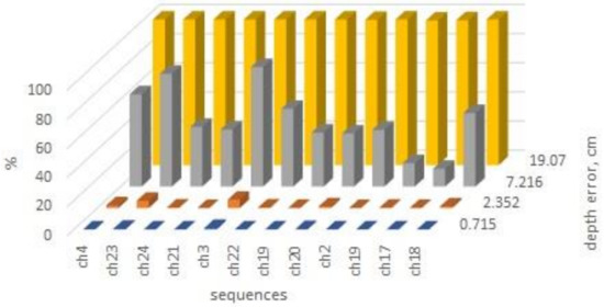 In Figure 8, the probability density and the probability that the random variable (the series of numerical values over time recorded at each of the twelve measurement locations) will take different values in the experimental range are shown.
