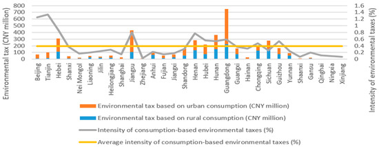 Regarding urban and rural areas, with the exception of Liaoning, Jilin, Anhui, Chongqing, Sichuan, Gansu, Yunnan, Qinghai, and Zhejiang, two-thirds of the provinces exhibited higher pig consumption in urban areas than in rural areas. Notably, pollutant emissions caused by urban consumption were significantly higher than those in rural areas. Tax revenue generated from urban consumption constituted approximately 60.9% of the total tax revenue. This trend was particularly evident in Beijing, Tianjin, Shanghai, and Xinjiang, where tax revenue from urban consumption reached as high as 80%. These findings indicated that, under the current tax mechanism, the consumption-based tax system aligned better with the pig consumption patterns in urban and rural areas.