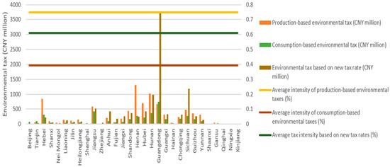 Although the primary objective of the environmental tax is to address environmental issues, the design of the tax mechanism, at the very least, should not exacerbate income inequality [18]. In recent years, there has been an increasing scholarly discourse on China’s environmental tax. Many researchers argue that the current tax system largely inherits the structure of pollution discharge fees, and the underlying asymmetry between the benefits and costs for polluting entities remains a fundamental issue in environmental problems [19]. It is important to acknowledge that, under different realistic constraints, the polluter-pays principle may not always be the optimal choice. Lu et al. [20] advocate for a perspective of shared environmental responsibility, suggesting that consuming provinces should also bear the relevant emission responsibility. In comparison with a single-polluter-pays principle, a series of studies reveal that tax deviations among regions and the distribution of tax benefits should be thoroughly considered, with the introduction of a consumer-pays principle for taxation [17].
