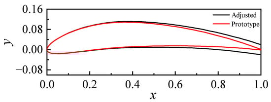 Airfoils contain complex aerodynamic phenomena and flow mechanisms, such as laminar flow, turbulent flow, transition, shock, separation, and vortices. NACA series airfoils exhibit excellent flow characteristics and streamlined outer shapes. In this study, we draw from the well-established NACA6410 airfoil to construct new blades. The mid-camber line and thickness distribution of the airfoil are the most significant factors influencing the airfoil’s shape. The thin trailing edge of the NACA6410 airfoil poses challenges in structural design and manufacturing. To address this, the trailing edge of the airfoil is modified to have a fixed length, and a curve from 40% of the chord length to the trailing edge point is generated in airfoil design software. Using the leading edge point as the origin, the coordinates of the geometric feature points of the original and modified airfoils are obtained, as shown in Figure 2.