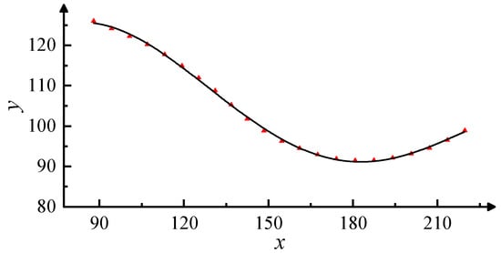 Firstly, the mid-camber line of the prototype blades is fitted and corrected using polynomial fitting. The resulting fitting curve is shown in Figure 4, where the R2 values of the fish body centerline fitting equations are all above 0.999. The fitting curve closely resembles the shape of the mid-camber line in the prototype blades, ensuring that the fitted curve possesses similar aerodynamic characteristics to the original blades. The equation corresponding to the fitting curve is as follows: