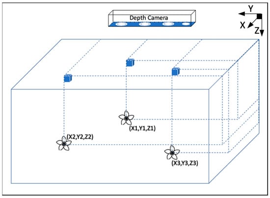 Based on the object’s (flower’s) location in the image and its distance from the coordinates, the relative distances were determined for each coordinate. For the detected objects, flowers’ central coordinates in the plane coordinate system were determined using the center point of the prediction box produced using YOLOv5. The points (x1, y1) and (x2, y2) are the left and right vertex points in the pixel coordinates of the observed prediction box obtained with the YOLOv5 model (Figure 11 and Figure 12). Accordingly, the center point coordinate (x, y) was calculated using the following Formula (3) according to [22].