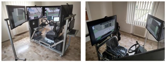 Driving simulators are regularly used in vehicle studies, including vehicle and traffic control testing, driver performance testing, driver training under various scenarios, and in developing realistic driving games. In contrast to operating actual vehicles, driving simulators allow high reproducibility of driving scenarios at the expense of realism [19]. Recently, simulators have moved beyond basic driver testing and training, and many simulators are now used for specialized purposes, such as testing hardware interfaces, allowing multiple drivers in the loop, interacting with actual vehicles, and even remote teleoperation of vehicles [20]. The automotive sector regularly uses driving simulators for hardware-in-the-loop (HIL) tests. According to Fathy et al. [21], the advantages of a HIL system include higher fidelity, faster simulation speed than purely virtual systems, and greater comprehensiveness than purely physical systems. The state-of-the-art driving simulations often use HIL combined with human-in-the-loop testing, sometimes called H2IL, in which human operators interact with a HIL workbench. While this represents an extremely high fidelity yet highly safe testing environment, it is recognized that such H2IL capability is generally underused in vehicle research and development [22]. The use of driving simulators for tractor studies is at a very early stage is compared with automotive systems. The rarity of simulated tractor testing environments is mainly due to the high operating expense and the limited funding available for tractor research compared with automotive systems.