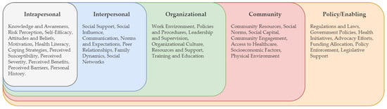 - McLeroy, K.R.; Bibeau, D.; Steckler, A.; Glanz, K. An Ecological Perspective on Health Promotion Programs. Health Educ. Q. 1988, 15, 351–377. [Google Scholar] [CrossRef]