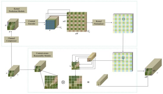 - Wang, J.; Chen, K.; Xu, R.; Liu, Z.; Loy, C.C.; Lin, D. Carafe: Content-aware reassembly of features. In Proceedings of the IEEE/CVF International Conference on Computer Vision, Seoul, Republic of Korea, 27 October–2 November 2019; pp. 3007–3016. [Google Scholar]