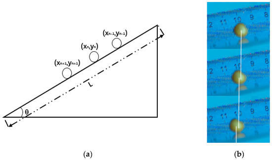 The collision recovery coefficient is measured using the inclined plane collision method [26], and the measurement principle is shown in Figure 14.