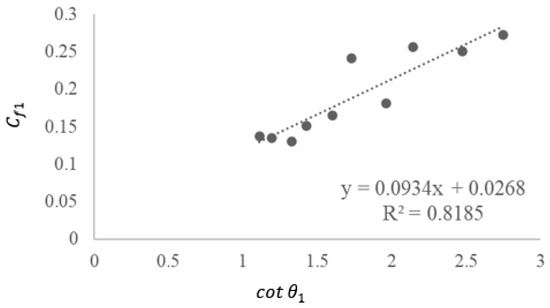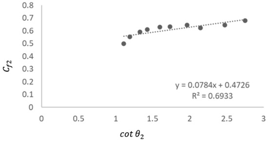 The energy loss ratio of corn seeds rolling on the PMMA plate is fitted with the cotangent value of the angle between the test plate and the horizontal plane, and the equation is obtained as follows: