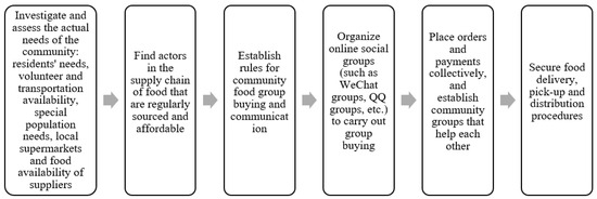 Communities in cities are faced with problems such as high population density, intense mobility of people, confined and concentrated food markets, and high requirements for food, so the resilience of the urban food system has undergone multiple tests in the era of COVID-19. Local communities play a key role in ensuring the sustainability and resilience of urban food systems. Relevant actors in the community have formed a key force in the governance of urban food systems through grass-root down-to-up discourse coalition, collective action and interaction, highlighting the ability of grassroots governance such as community mobilization capacity and residents’ self-driven participation in the crisis. The interaction and collective action of urban food consumers represented by community residents, food system governors represented by management and service personnel of communities, and stakeholders in the food services industry such as supermarkets, distributors and retailers in the community have collectively made the urban food system restore quickly from initial chaos and shocks caused by COVID-19 and function well, and also provide a reference for multi-level and multi-actor community governance.