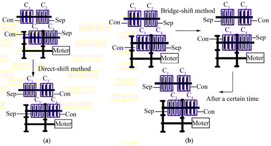 Shift process under different control strategies. (a) Direct-shift method. (b) Bridge-shift method.