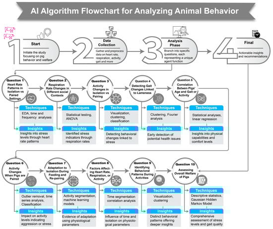 Decoding pigs’ physiological responses and behaviors is crucial to assess their welfare accurately. AI algorithms play an essential role in interpreting chronically elevated heart rates or respiration rates that may denote the presence of chronic stress, while anomalies in gait might signal musculoskeletal issues or discomfort, which can be detected through machine learning models [12,13]. Therefore, the continual real-time monitoring of these parameters, enabled by IoT sensors and enriched by AI analytics, can offer an early warning system for potential welfare problems, thereby allowing timely and appropriate interventions.