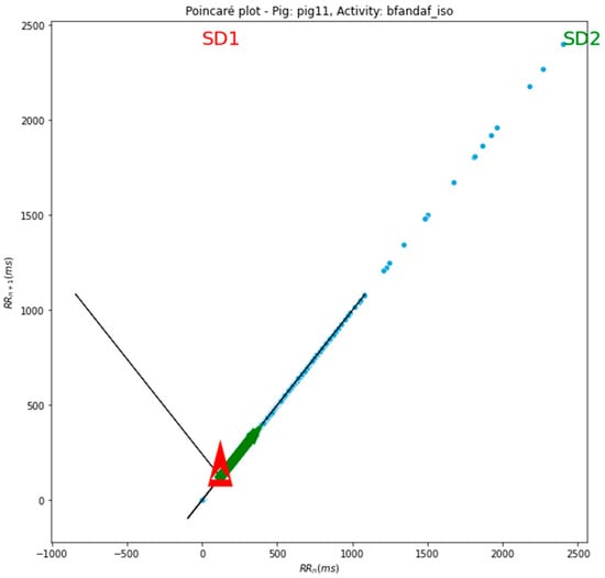 Lastly, for Pig11 (refer to Supplementary Information), the total power band is at a power of 300, a value remarkably higher compared to the other pigs. This elevated total power is due to variations in other bands. The higher HF indicates a heightened sympathetic response associated with relaxation. Conversely, the LFnu is within the normal range, and the LF/HF ratio is also behaving normally, indicating high parasympathetic activity, which is associated with relaxation.