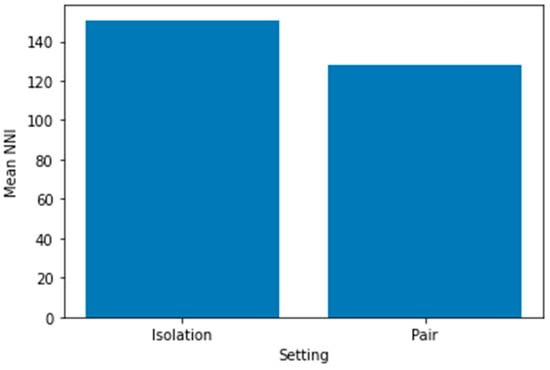 The study embarked on a journey to unravel the intricate dynamics of heart rate (HR) and heart rate variability (HRV) in pigs under varying conditions, specifically in isolation versus paired settings. Stress typically leads to increased heart rate. Therefore, an upward trend in HR data may suggest increased stress. HRV is commonly used as a non-invasive measure of autonomic nervous system activity and can provide insights into the overall health and physiological condition of the animal. Furthermore, heart rate variability (HRV), which is the fluctuation in the time intervals between heartbeats (Table 3), can be a potent indicator of stress. High HRV usually suggests less stress, while low HRV may indicate higher stress levels.