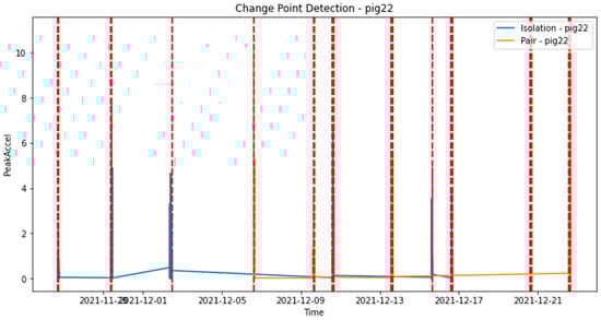 Patterns discernible from this plot may represent the pigs’ adaptation to these different conditions, thereby providing valuable insights into their behavioral responses to feeding, isolation, and re-pairing scenarios. Such visual analytics, complemented with rigorous statistical assessments, contribute significantly to understanding the complexities of pig behavior and welfare.