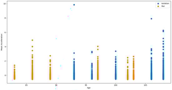 4.9. Q9. Behavioral Pattern Recognition during Feeding, Isolation, and Pairing Periods: Insights from Sensor Data