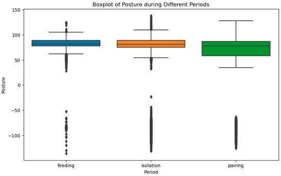 Comparative boxplots depicting posture variations across feeding, isolation, and pairing periods.