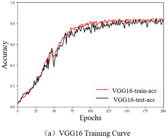 All calculations were performed using a PC with an NVIDIA GeForce GTX 1060 graphics card (NVIDIA, Santa Clara, CA, USA), an Intel (R) core (TM) i7-6700 CPU processor (Inter, Santa Clara, CA, USA), the Windows10 operating system (Microsoft, Redmond, WA, USA), Anaconda 3, TensorFlow—GPU 2.2.0, and Pycharm 64. Three DS-IPC-B12-I cameras were installed above the non-contact fixed fence channel and on the left and right sides of the gate. These devices are suitable for locations where light lines are dark and high-definition picture quality is required. The cameras provided 2 million effective pixels, a resolution of 1920 × 1080, a video frame rate of 25 fps, an RJ45 10 M/100 M adaptive ethernet port, a support dual bit stream, and mobile phone monitoring. Images were standardized to a size of 224 × 224 × 3 during network training and normalized before being input to the CNN to prevent gradient explosion during the training process. The network was trained using transfer learning for a total of 200 rounds. A classification loss function was used for the overall loss, with a batch size of 6, the Adam optimizer, and a learning rate of 0.0001. Tensorboard was used to monitor accuracy changes during network training in real time. Parameter settings for the three network models involved in classification are provided in Table 1.