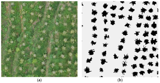Construction of training sample set (example): (a) Original image; (b) Sample illustration of U-Net model.