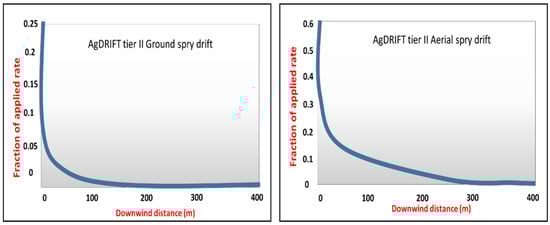 Figure 3. Estimation of spray drift deposition measurements of agriculture pesticide applications (ground and aerial) generated by the AgDRIFT model.
