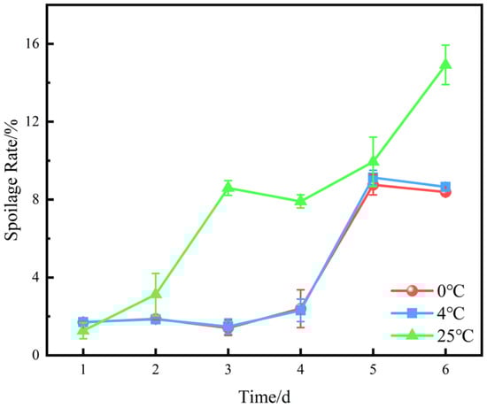 The spoilage rate was determined as follows: the percentage of spoilage (mold, softening, rotting, etc.) of blueberry fruit was calculated from the 90 experimental samples to be measured each day. The formula for this was as follows: