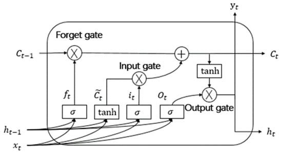 According to the data features, we can separately obtain the linear components, nonlinear components and time series components of the meteorological data through the LSTM and GBDT models, where the LSTM unit is a prediction model for inferring temporal components of the solar intensity and GBDT unit is an integrated learning model for estimating the nonlinear and linear components. Then, we combined the prediction results with a weighted average K-means algorithm, which is applied to aggregate weather data clusters of similar weather and chose different weighting coefficients for each cluster. Figure 4 shows the LSTM unit. Figure 5 shows the prediction network model based on LSTM. Figure 6 shows the GBDT model. And Figure 7 shows the general workflow for LGHPA.